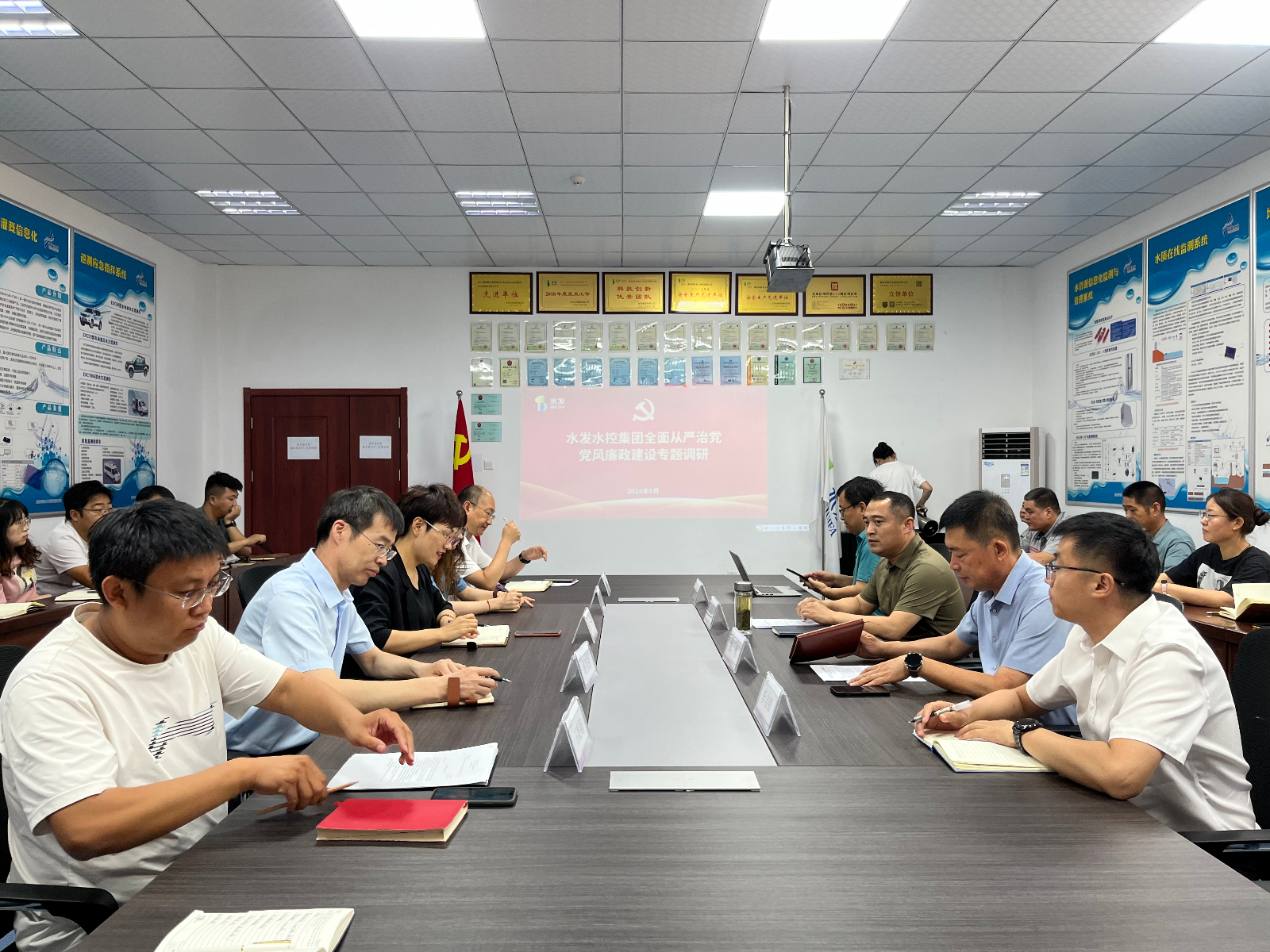 6月18日,水發(fā)水控集團(tuán)黨委委員、紀(jì)委書記王高升到濰坊河海水文科技有限公司開展全面從嚴(yán)治黨、黨風(fēng)廉政建設(shè)專題調(diào)研工作,水發(fā)水控集團(tuán)濰坊區(qū)域公司總經(jīng)理張勇主持調(diào)研會議,河海公司全體員工參加調(diào)研。